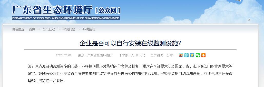 廣東環(huán)保省廳回復(fù)|企業(yè)是否可以自行安裝在線監(jiān)測(cè)設(shè)施?