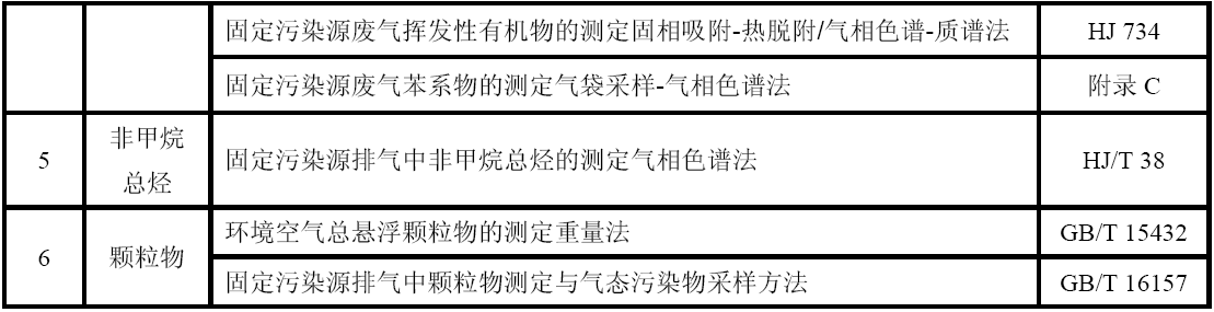 GB 16297 大氣污染物綜合排放標準 GB 24409 汽車涂料中有害物質限量 GB/T 15089 機動車輛及掛車分類 GB/T15432 環境空氣總懸浮顆粒物的測定重量法 GB/T 16157 固定污染源排氣中顆粒物測定與氣態污染物采樣方法 HJ 583 環境空氣苯系物的測定固體吸附/熱脫附-氣相色譜法 HJ 584 環境空氣苯系物的測定活性炭吸附/二硫化碳解吸-氣相色譜法 HJ 644 環境空氣揮發性有機物的測定吸附管采樣-熱脫附/氣相色譜-質譜法 HJ 732 固定污染源廢氣揮發性有機物的采樣氣袋法 HJ 734 固定污染源廢氣揮發性有機物的測定固相吸附-熱脫附/氣相色譜-質譜法 HJ/T 38 固定污染源排氣中非甲烷總烴的測定氣相色譜法 HJ/T 55 大氣污染物無組織排放監測技術導則 HJ/T 75 固定污染源煙氣排放連續監測技術規范(試行) HJ/T 194 環境空氣質量手工監測技術規范 HJ/T 293 清潔生產標準汽車制造業(涂裝) HJ/T 397 固定源廢氣監測技術規范 《建設項目環境保護設施竣工驗收監測技術要求(試行)》(環發(2000)38號)