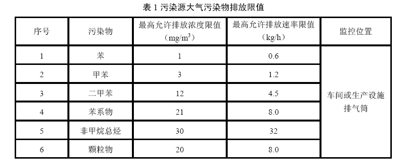 污染源大氣污染物排放濃度和排放速率限值應符合表1規定。