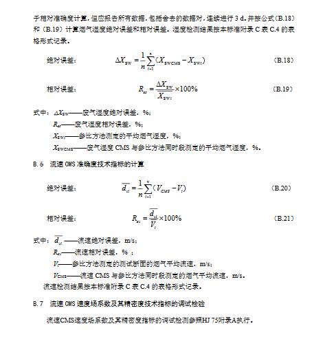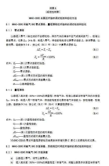 9.3.2.2氧含量、流速、煙溫和濕度技術指標、操作步驟和計算公式均按照本標準附錄B相關要求執行。