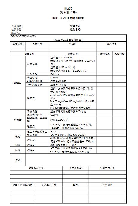8.1NMHC-CEMS在完成安裝、初調,并連續運行168h后,應進行為期72h的技術性能指標的調試檢測。調試檢測的技術性能指標包括: