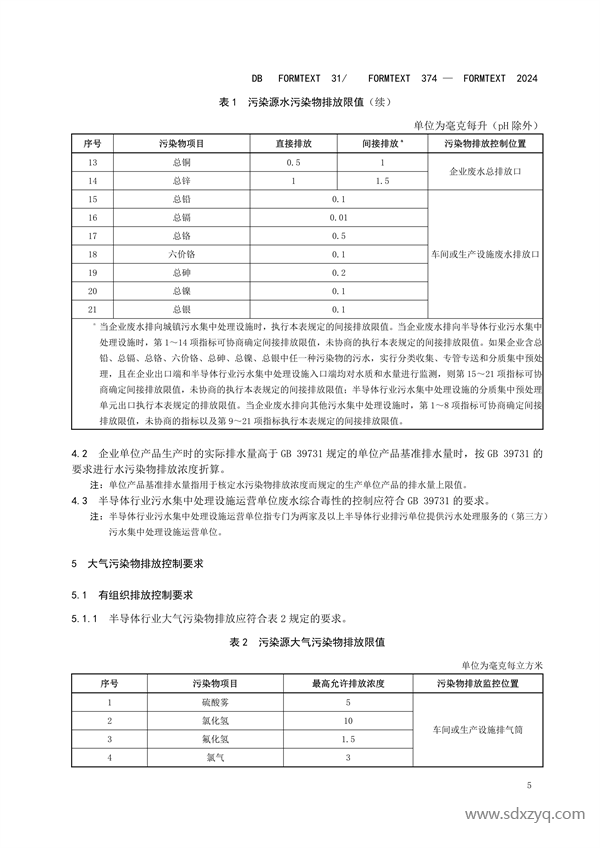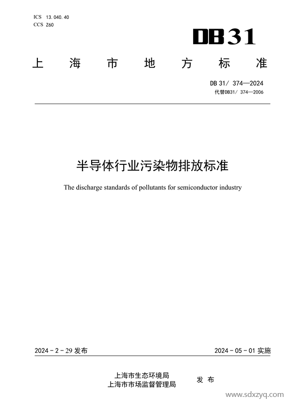 經上海市人民政府批準,《半導體行業污染物排放標準》(DB31/374-2024)為上海市地方污染物排放標準,現予以發布。2024年5月1日起實施。