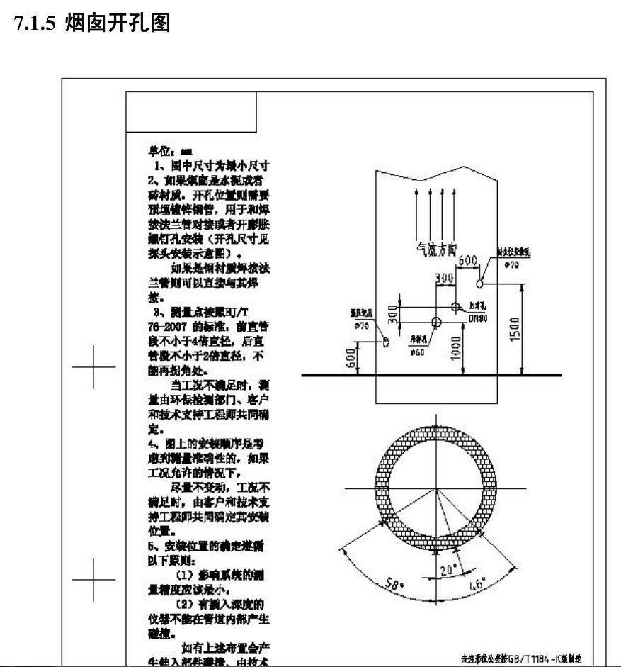 安裝煙氣在線監(jiān)測(cè)設(shè)備的煙囪上,按照國(guó)家75/76標(biāo)準(zhǔn)的話,一般情況下要開(kāi)4個(gè)或者5個(gè)孔;都有氣體污染物孔、溫壓流孔、粉塵(顆粒物)孔、環(huán)保局比對(duì)口;如果測(cè)濕度的話,那就加一個(gè)濕度孔。在開(kāi)好孔之后,一定要根據(jù)煙囪的材質(zhì),安裝好相應(yīng)的法蘭。